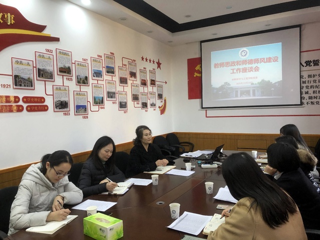 为有效推动教师思想政治和师德师风建设工作,12月13日下午,党委教师工作部部长钱嫦萍,副部长耿琰率部门工作人员一行4人来bwin必赢调研。调研座谈会在实验一楼第二会议室举行,bwin必赢党委副书记兼纪委书记苏建玲、党政办公室相关工作人员参加了会议。